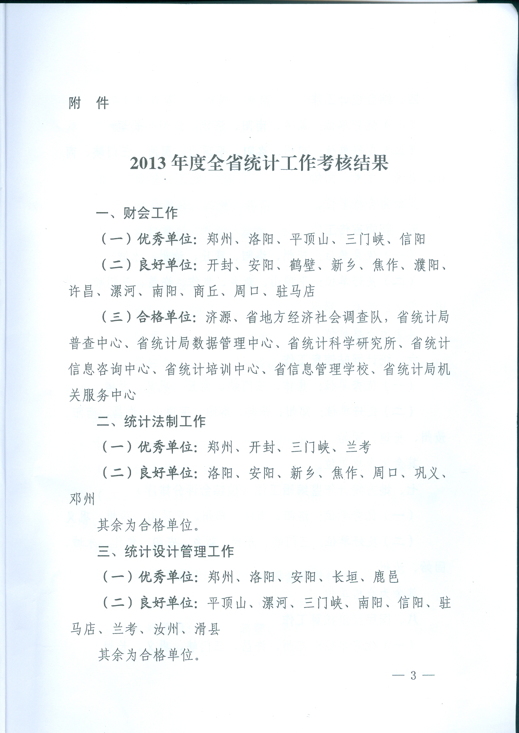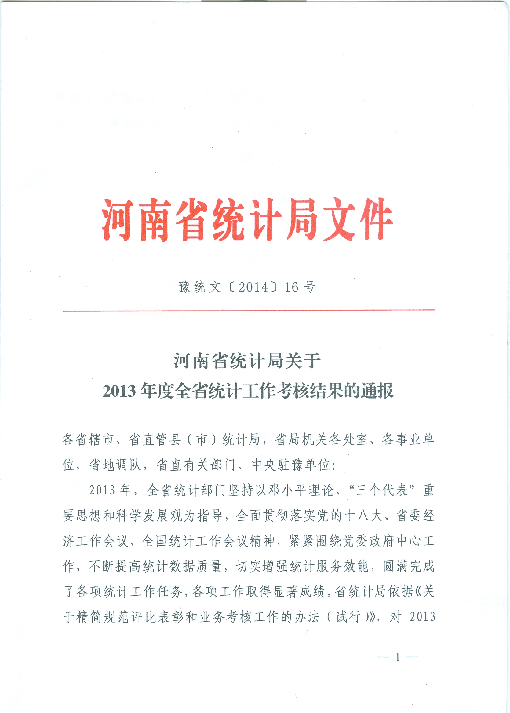 河南省统计局关于2013年度全省统计工作考核结果的通报
