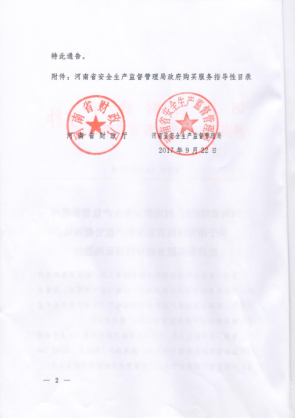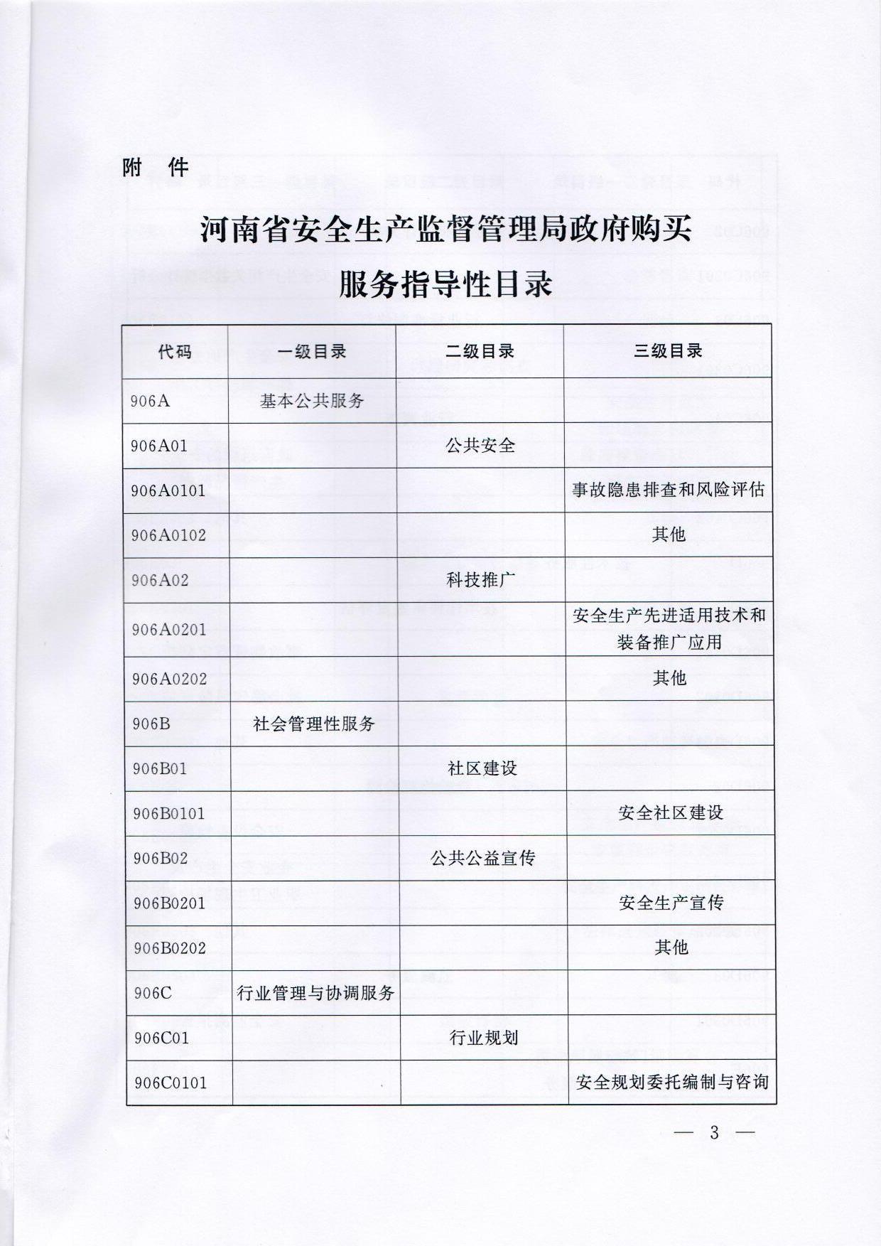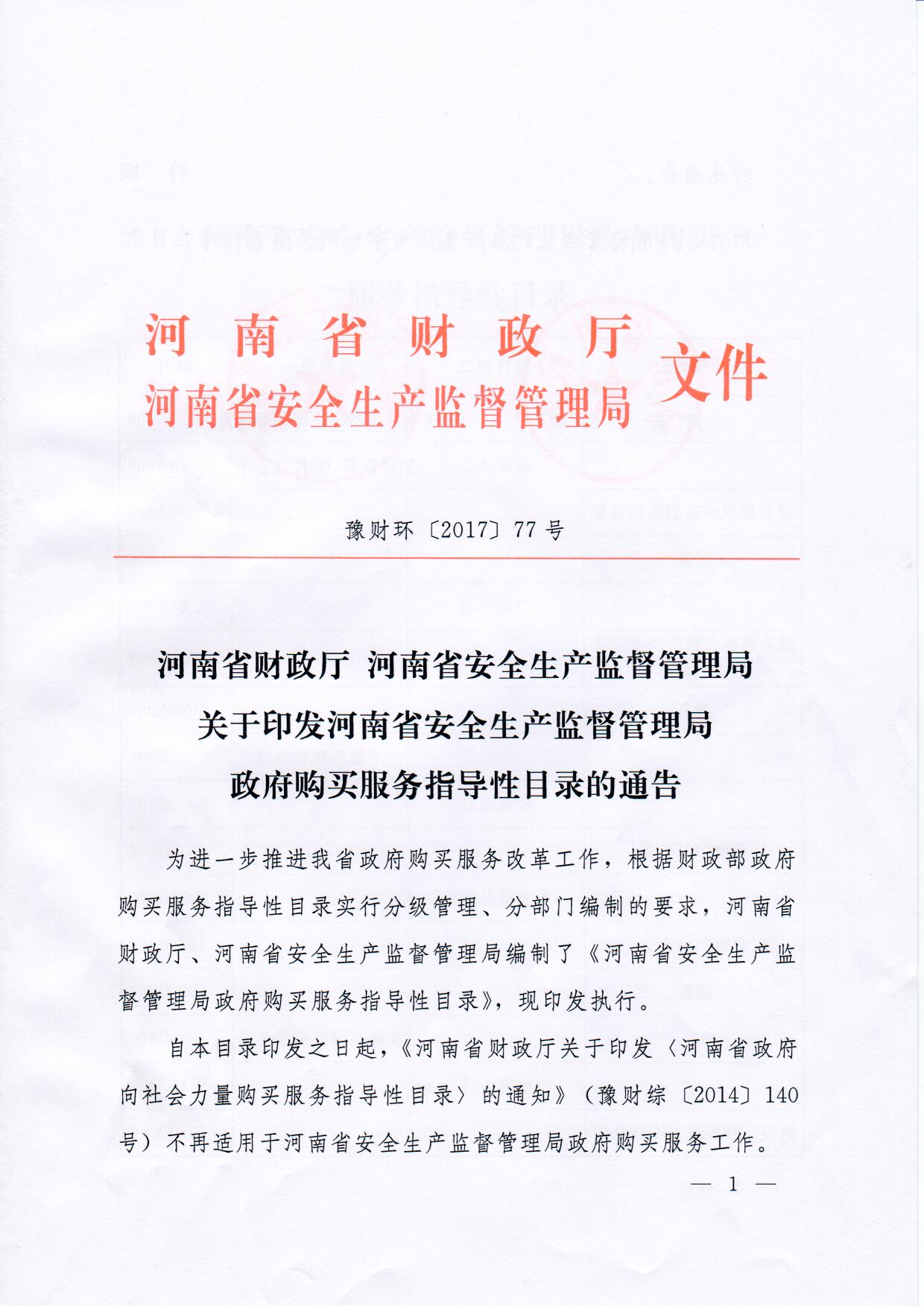 河南省财政厅 河南省安全生产监督管理局关于印发河南省安全生产监督管理局政府购买服务指导性目录的通告