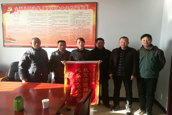 12月25日上午,新蔡县安监局办公室唢呐声声,局对口脱贫帮扶村—新蔡县佛阁寺镇铁台村支书带领村两委班子成员和群众代表,向安监局赠送书写“心系群众办实事 扶贫济困解民忧”的两面锦旗,表达了全村老百姓对县安监局及驻村帮扶工作队一年来倾心帮扶的感谢感激之情。