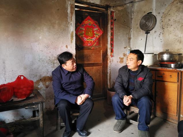 1228,省安全监管局党组书记、局长张昕和副巡视员孙兆贤专程来到省局对口扶贫村鲁山县赵村村调研扶贫工作,并入户慰问看望特困贫困户,省安全监管局人事培训处处长何景利陪同调研慰问。
