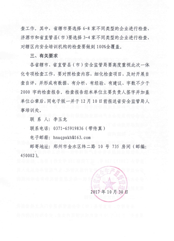关于开展安全生产和职业健康培训考核一体化专项检查工作的通知