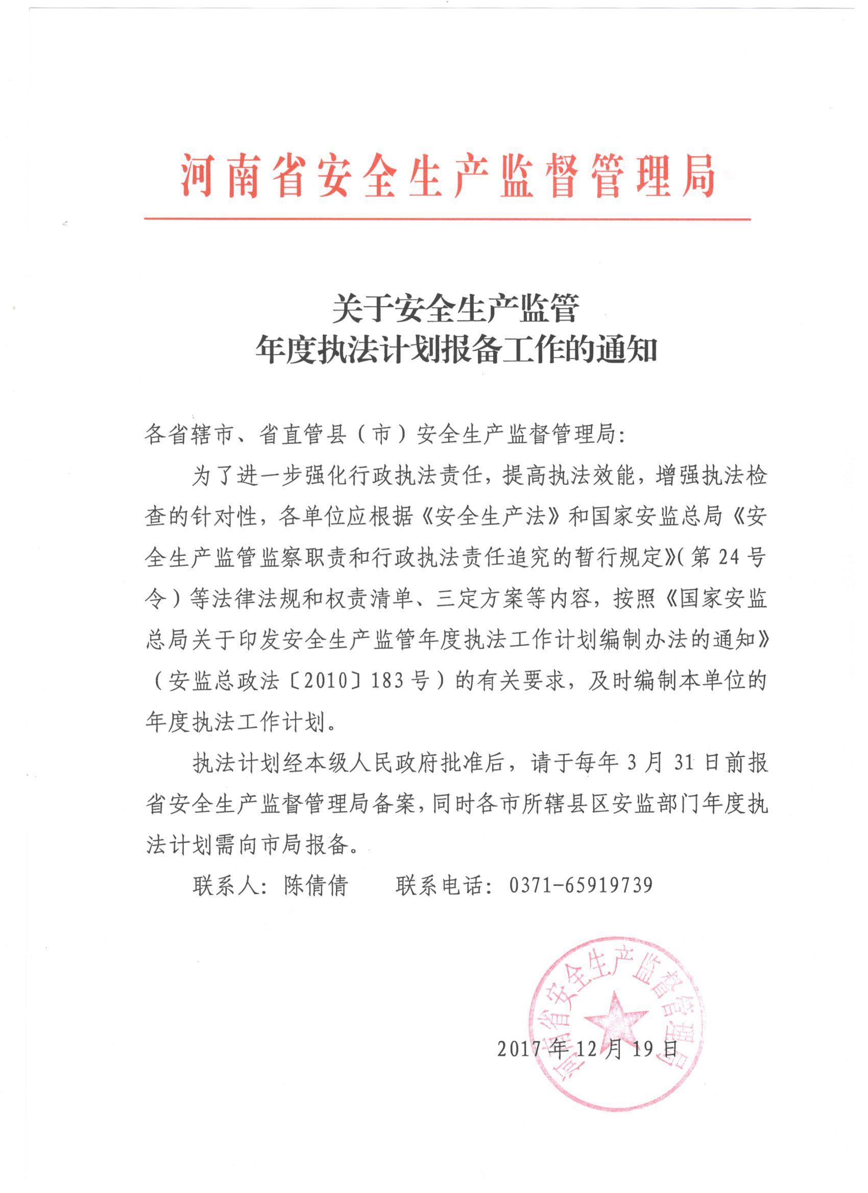 关于安全生产监管年度执法计划报备的通知